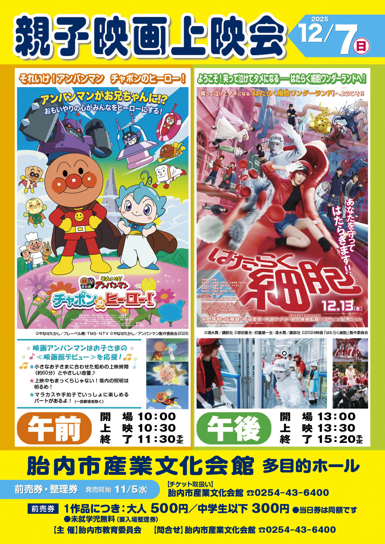 親子映画上映会ーご家族みんなで楽しめる映画を2本立てで上映します!ー午前の部