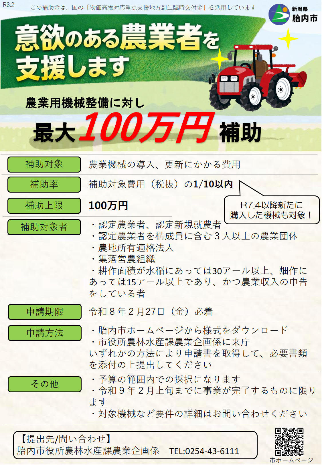 「胎内市農業用機械高騰対策支援事業」のご案内(JPG:405KB)